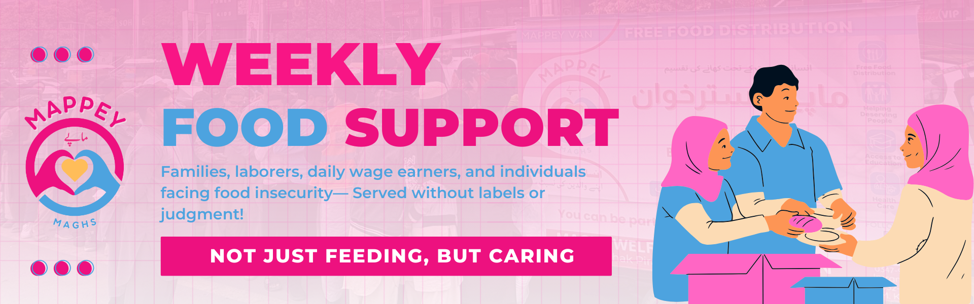 Mappey Organisation's primary goal is to meet basic life necessities. Therefore, initially, five key objectives have been set. The first phase has already begun with free food distribution under the name 'Mappey Dastarkhwan'.